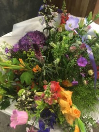 Onze boeketten zijn handgemaakt met bloemen van het seizoen, die dagelijks vers binnenkomen.